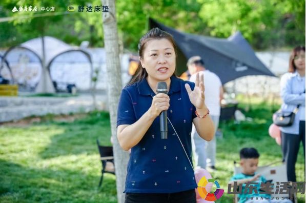 聚美壹家家居有限公司总经理/济南舒达床垫负责人邱超女士为活动致辞,济南舒达致力于为顾客提供更好的睡眠体验,欢迎社会各界人士到店体验,很高兴在山谷中,水泽畔,云海间,一顶帐篷,跟到场的各位嘉宾邂逅整个春日的浪漫。