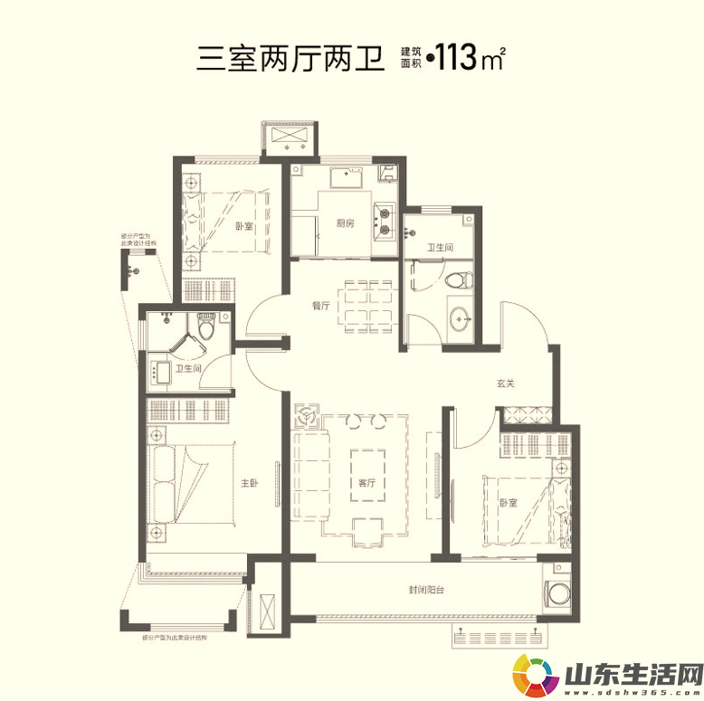 在建面约113㎡舒阔三居中,U型厨房、南北通透的LDK布局、宽境阳台直达客厅,在兼具观景与采光的同时,光感、视野、功能都得到了全方位的升级。