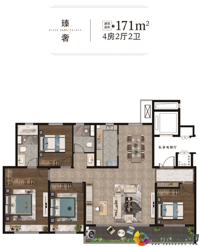 研磨之下的户型设计,令大家心动不已。建面约171㎡大平层为项目顶配户型,规划平墅级尺度、四室两厅两卫空间,恢弘的空间格局,无需换房,足以容纳三代同堂的幸福生活,给居者“一步到位”的生活体验。